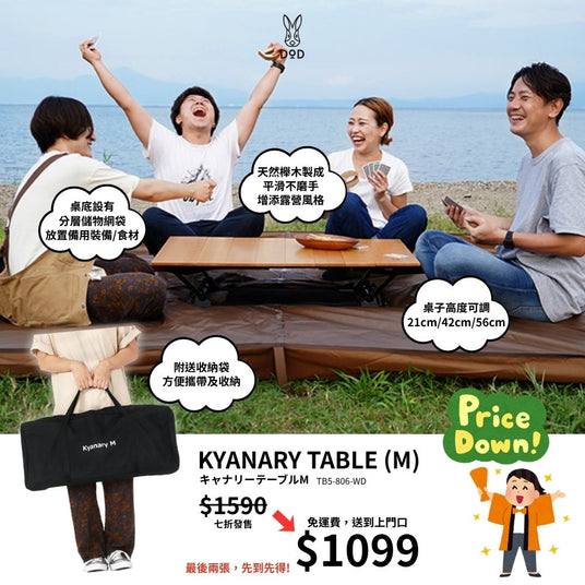 木枱係露營界一直大受歡迎,但重量同體積往往都係大家卻步既原因。呢張Kyanary Table之所以咁受歡迎,一嚟佢夠大可以圍住坐到4-6個人,二嚟佢可以摺疊又便攜!
